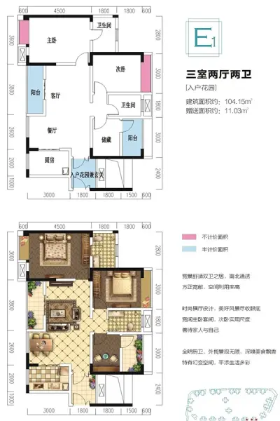 3室2厅2卫 建面 约104.15平